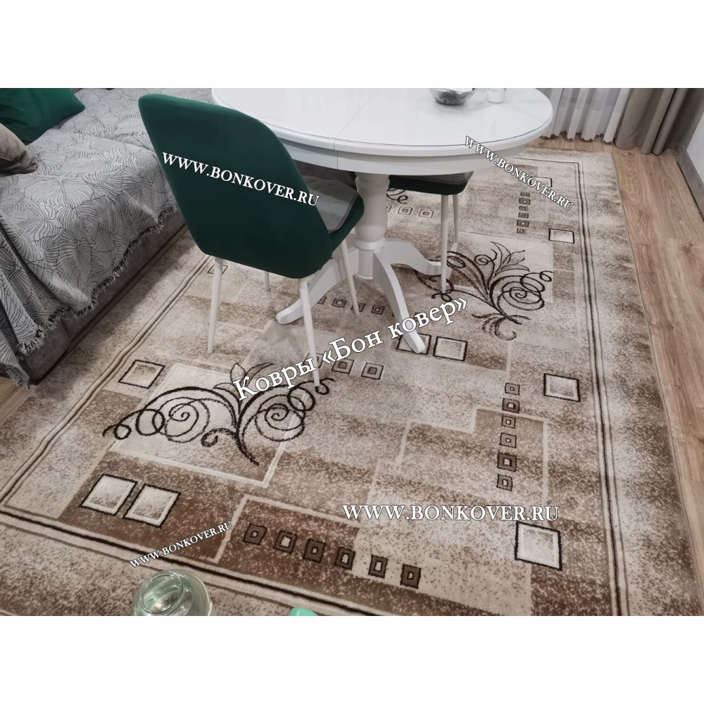 Ковер Для Комнаты Дизайн 30548 Бежево-Коричневый станет блестящим дополнением интерьера, оформленного в современном или классическом стиле. Мягкое, но прочное, ковровое покрытие обеспечивает тепло- и шумоизоляцию, отличается длительным сроком эксплуатации, надежностью, экологичностью и высокой износостойкостью, является отличной защитой от повышенной влажности в помещении и утеплителем для холодного пола. Благодаря качеству материалов, ковер не деформируется, сохраняет первоначальный вид под тяжестью предметов мебели. За его поверхностью легко ухаживать.